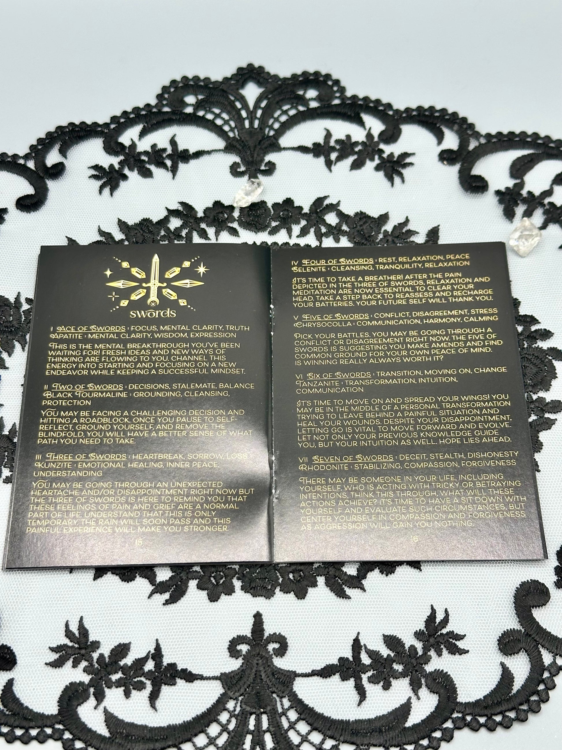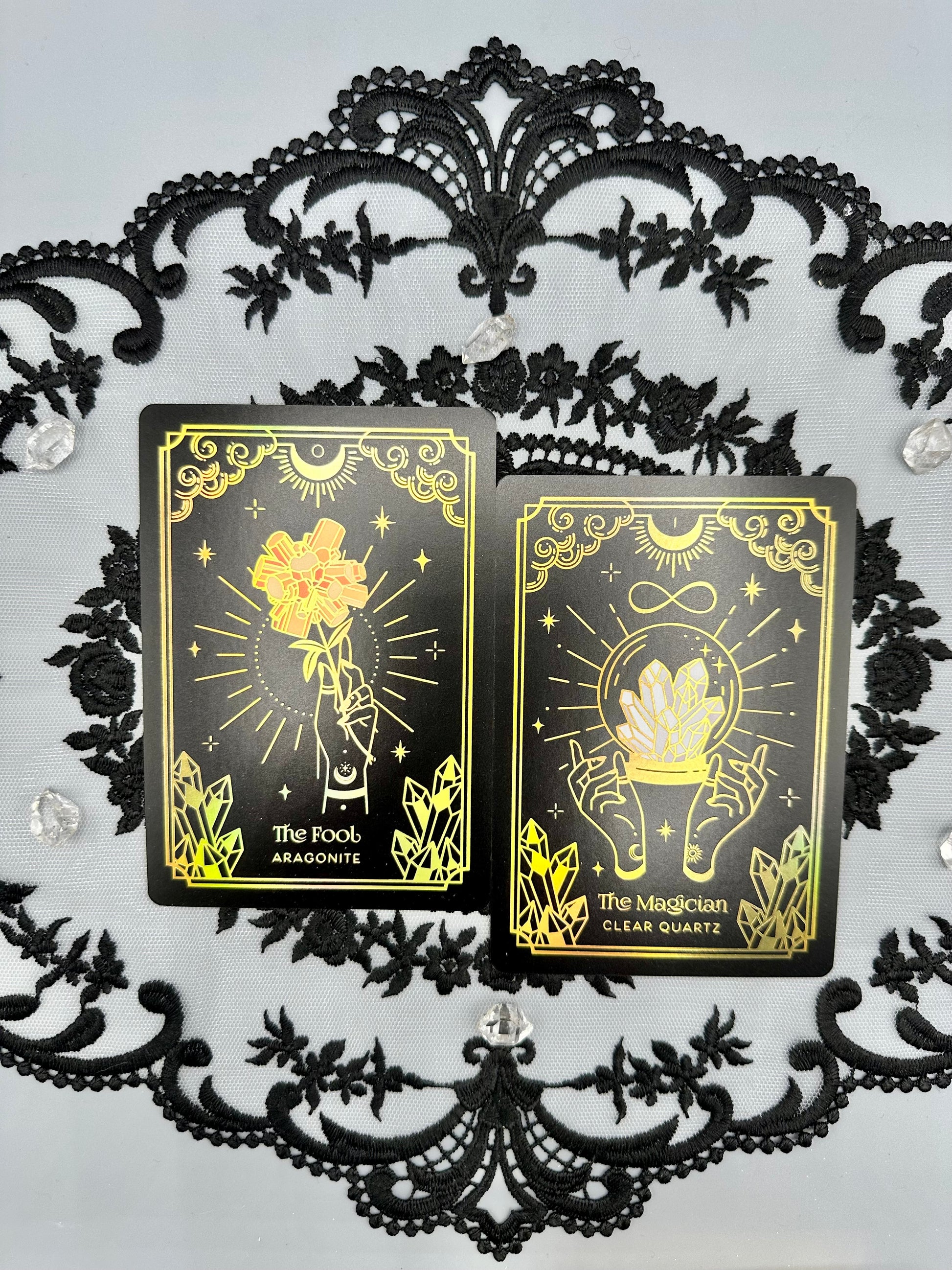 This is a full sized version of the deck (a smaller playing card size version is also available!) in gold with rainbow holographic details. These are great sized cards to add to your altar space to bring in a specific tarot and/or crystal energy to your space.