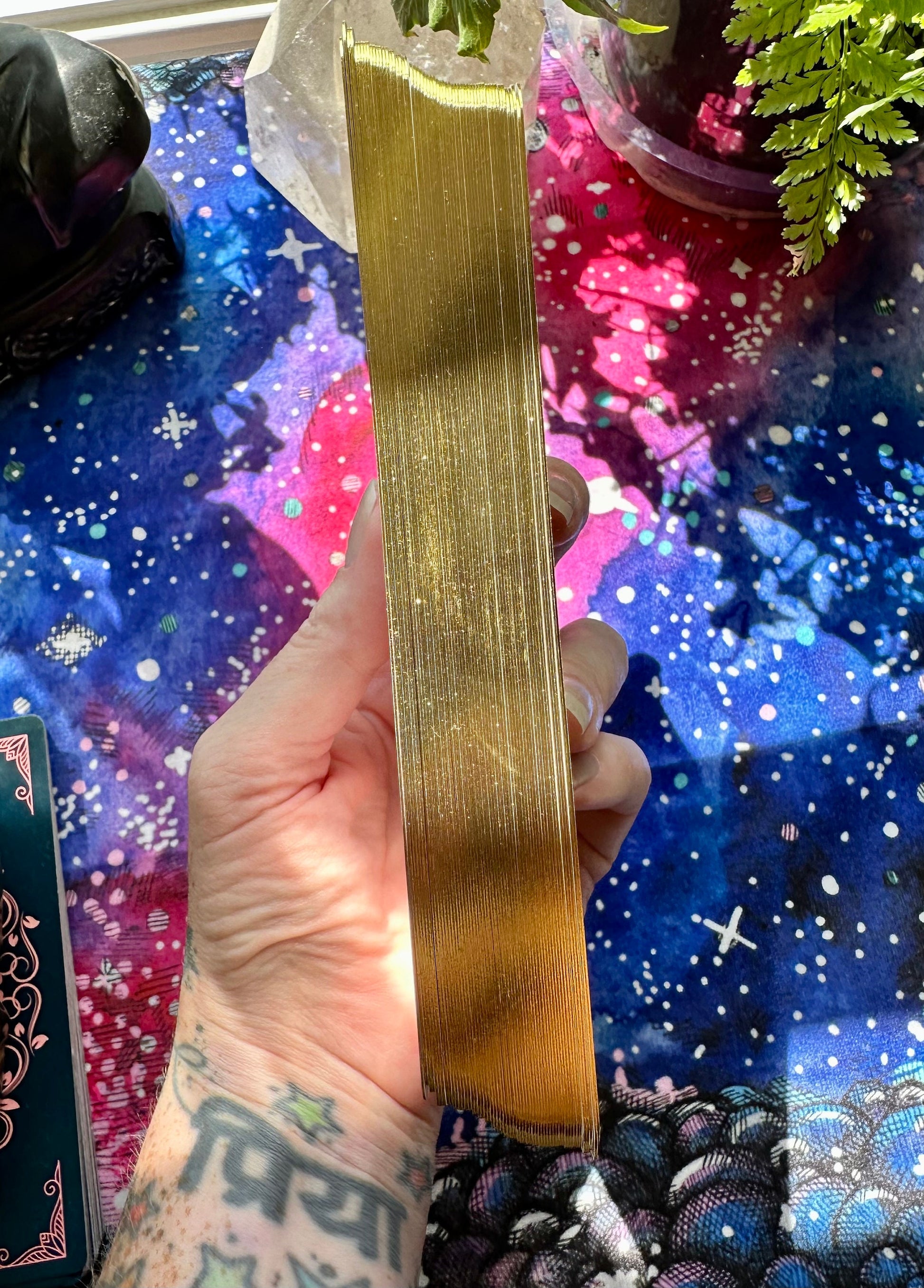 Deck Specs: The deck includes 56 cards, a guidebook, which includes rituals, practices, mediations and more, and a two-piece hard box. The cards are high quality and nice card stock. Cards are 6" x 3.5" with gilded gold edges.