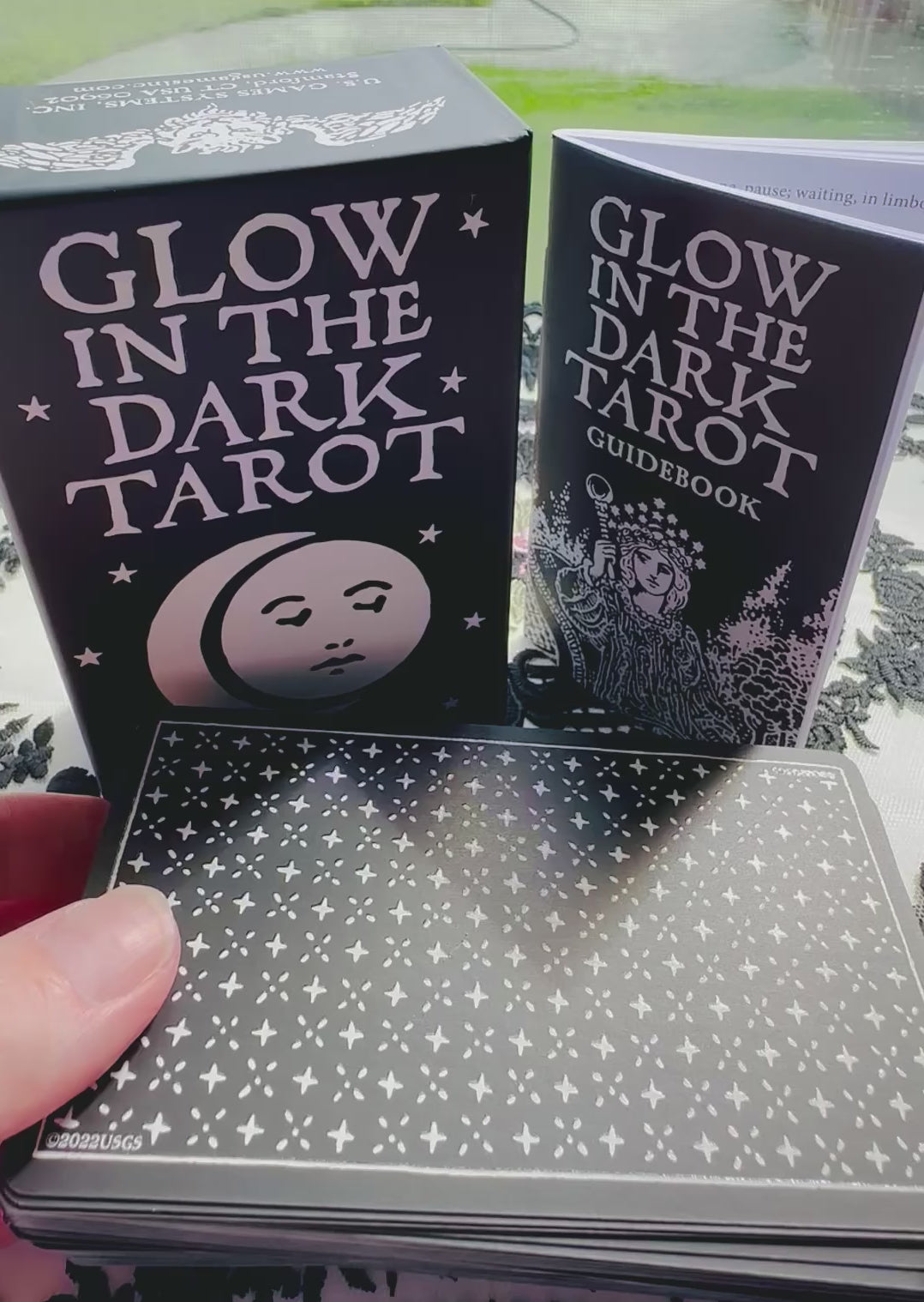 The Glow in the Dark Tarot is a unique twist on the original Pamela Colman Smith's beloved Rider-Waite-Smith Tarot artwork and features her hand-drawn pictures reimagined into glow in the dark beauties. Enjoy illuminating readings with this 78-card deck that glows after being exposed to light (see pictures- it glows super well!). This is a really fun way to do your readings, share the tarot with friends and bring more fun to your everyday. Includes a 56-page guidebook with upright and reversed meanings and tarot spreads.