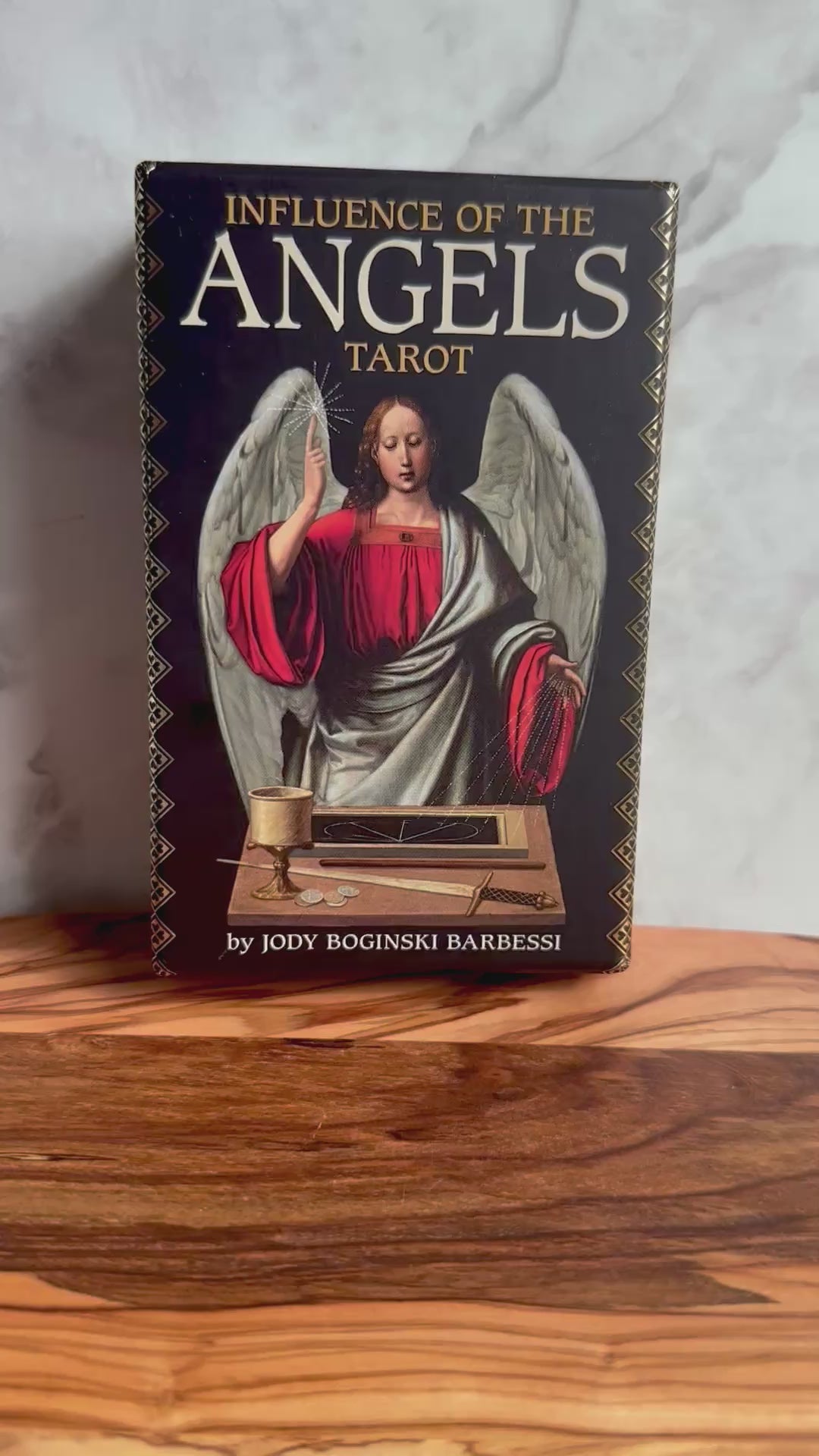 Influence of the Angels Tarot Deck is a beautiful 78 card deck that comes with a 184 page guidebook by Jody Boginski Barbessi and Karen Boginski. This deck illustrates the tarot through classically inspired artwork that seeks to explore the spiritual influence of the angels over the human experience.