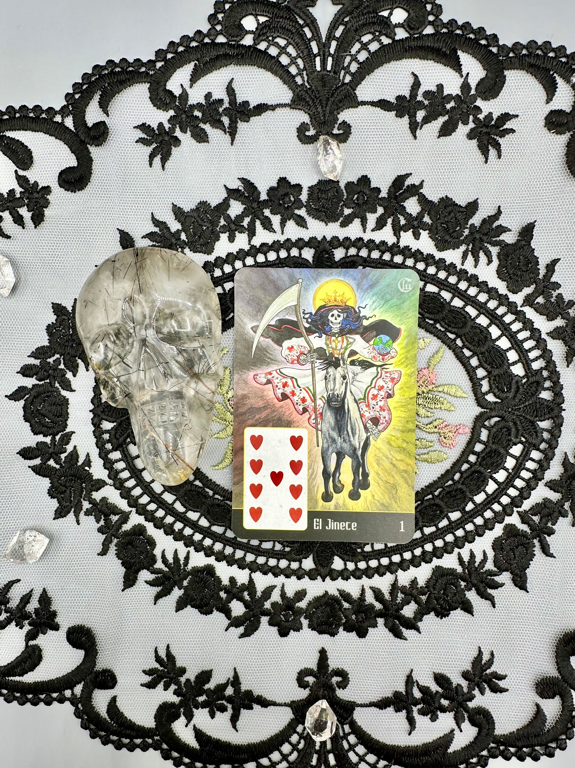 La Santa Muerte Lenormand Deck is a unique tool for divination, particularly for those that venerate Our Lady of the Holy Death or are looking for an engaging way to include La Santa Muerte in their every day practice and rituals. The cards are colorful, sturdy and easy to use, whether you are a seasoned Lenormand practitioner or are just starting out in this form of divination.