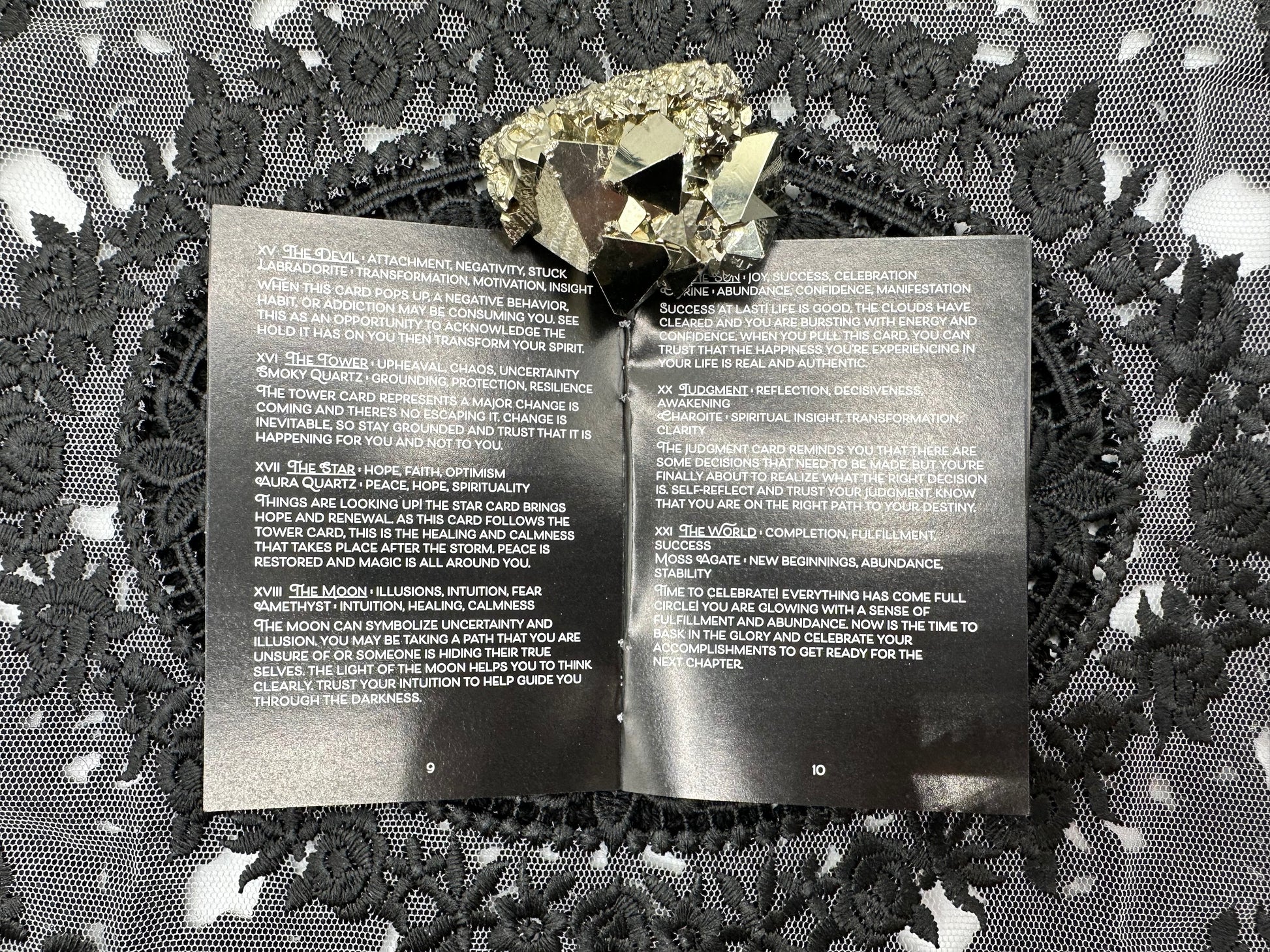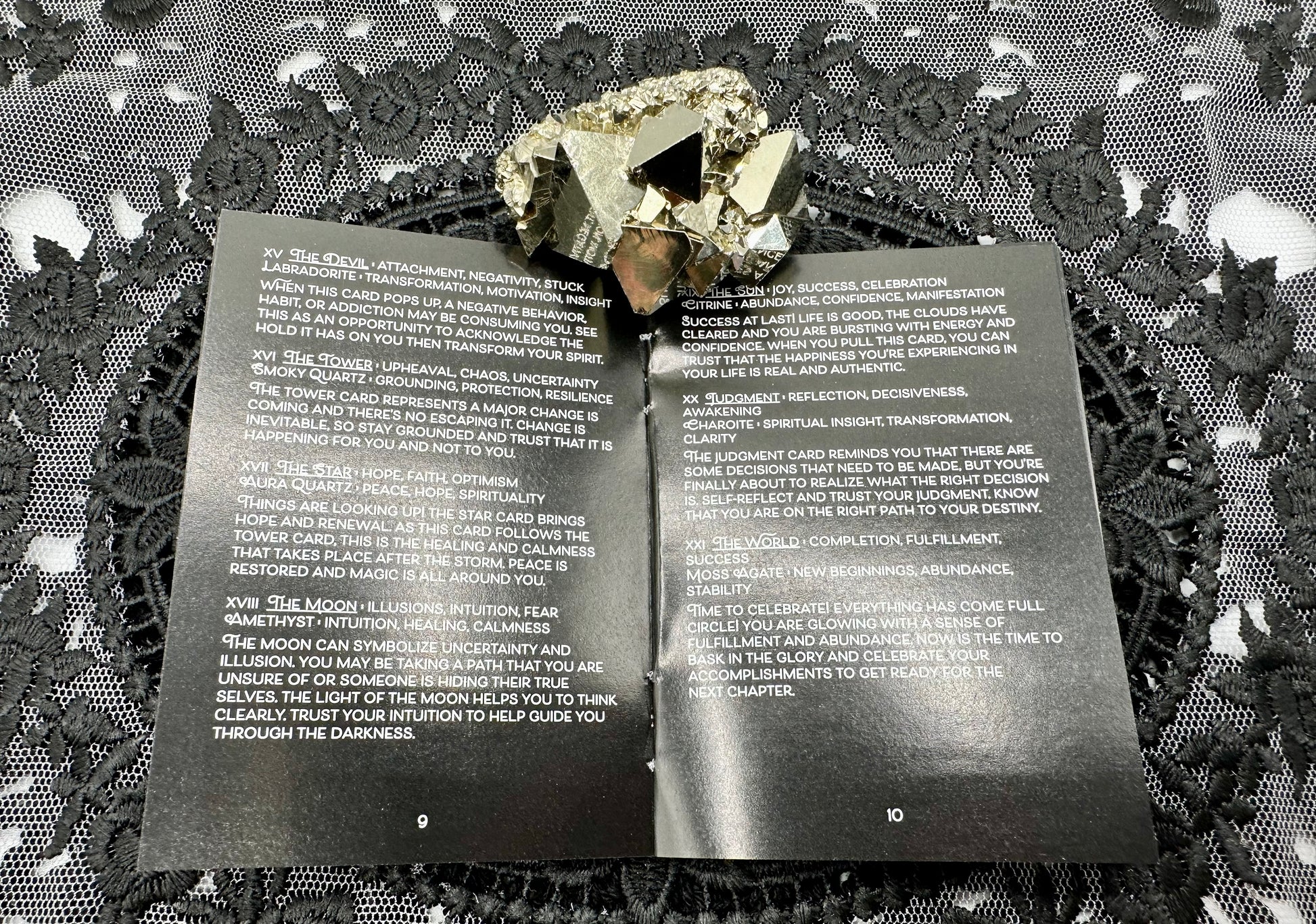 The Mini CrystalStruck Tarot is a smaller card size version of the CrystalStruck Tarot by Moonstruck Crystals. This gorgeous deck combines crystals with Tarot archetypes, offering a new twist on readings as well as a way to connect deeper with the healing power of our crystal allies. I particularly love the holographic details that shimmer and shine, especially the starry holographic rainbow edge!