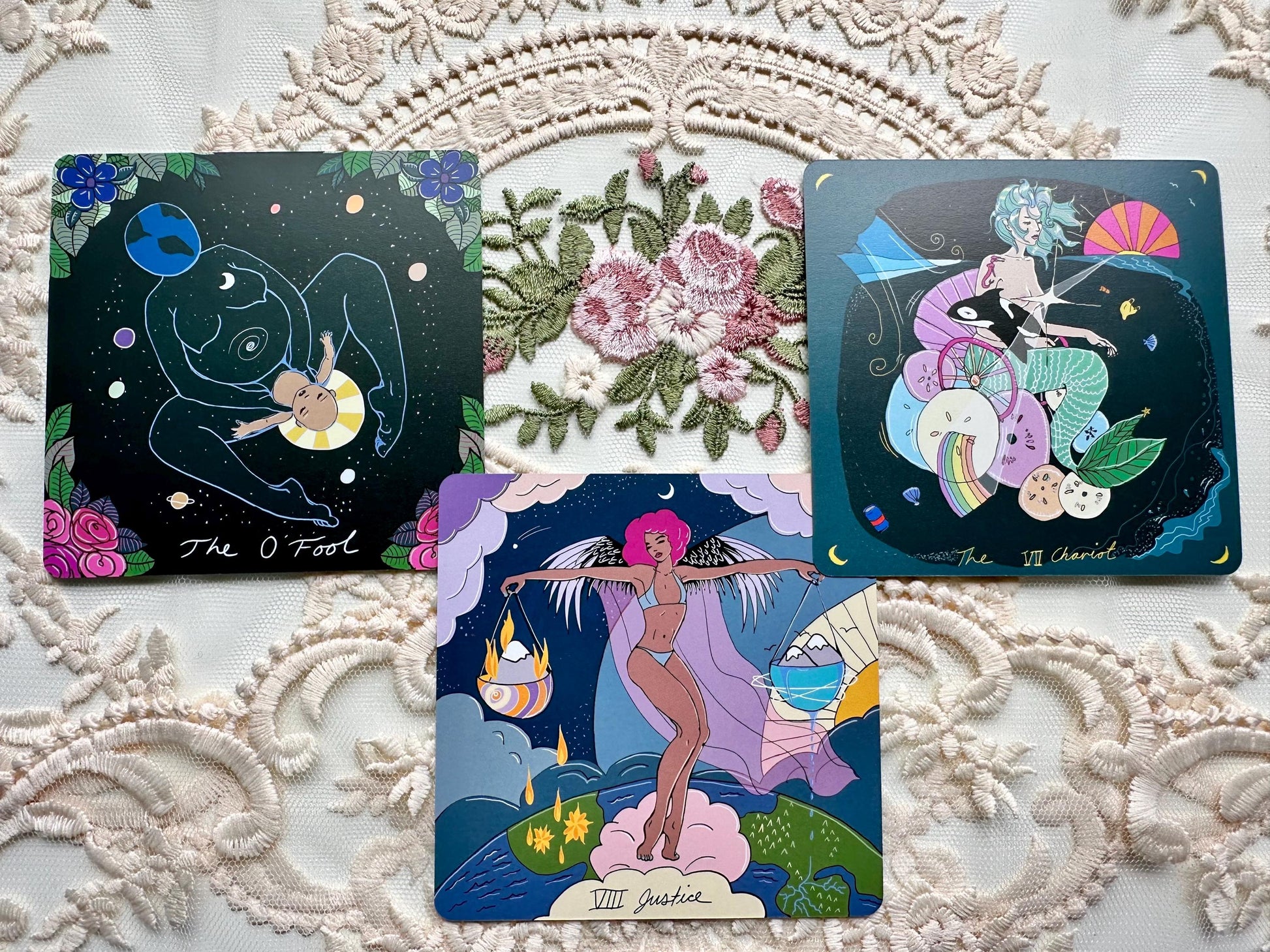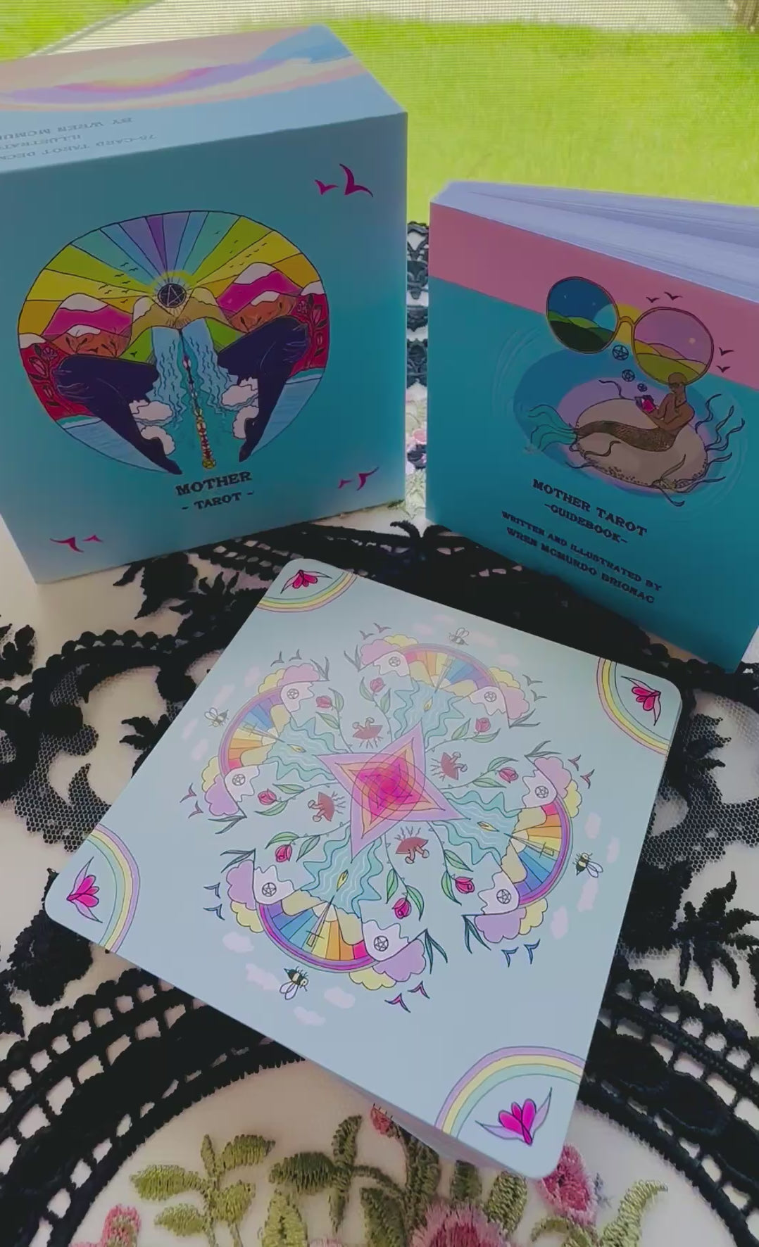 From the creator, Wren McMurdo Brignac, "While creating the Mother Tarot, I drew ideas and inspiration from Earth, birth, creativity, and climate change. This deck is lit with dynamic energy to spur you along your path. Take guidance from this deck as we embrace this dynamic time on our planet. This square deck is four-sided, meaning you can incorporate the four seasons, four elements, four directions, four phases of the lunar cycle, etc. into your readings. Try using this deck on waxing moon days when the collective consciousness is building creative energy."