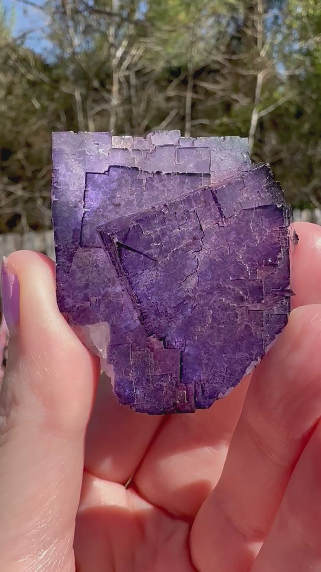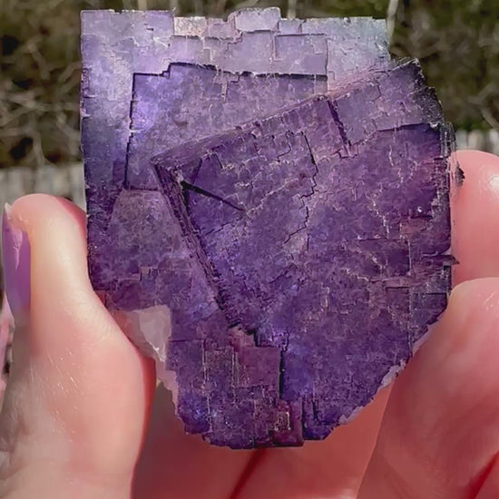 This listing is for a gorgeous single purple Fluorite specimen in a "stairstep" formation shape. It has a beautiful purple color with a clear white center. This piece displays really well and is a great representation of the stepped cubic Muzquiz fluorite from this region of Mexico. From the Tule Mine, Muzquiz Municipality, Coahuila, Mexico.