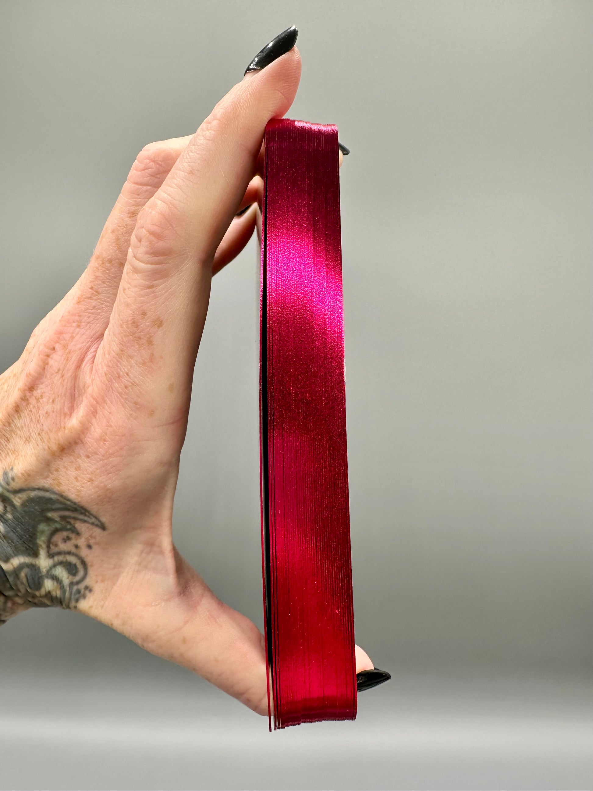 36 Cards with raspberry guilt edges, measuring 5" x 3.5"