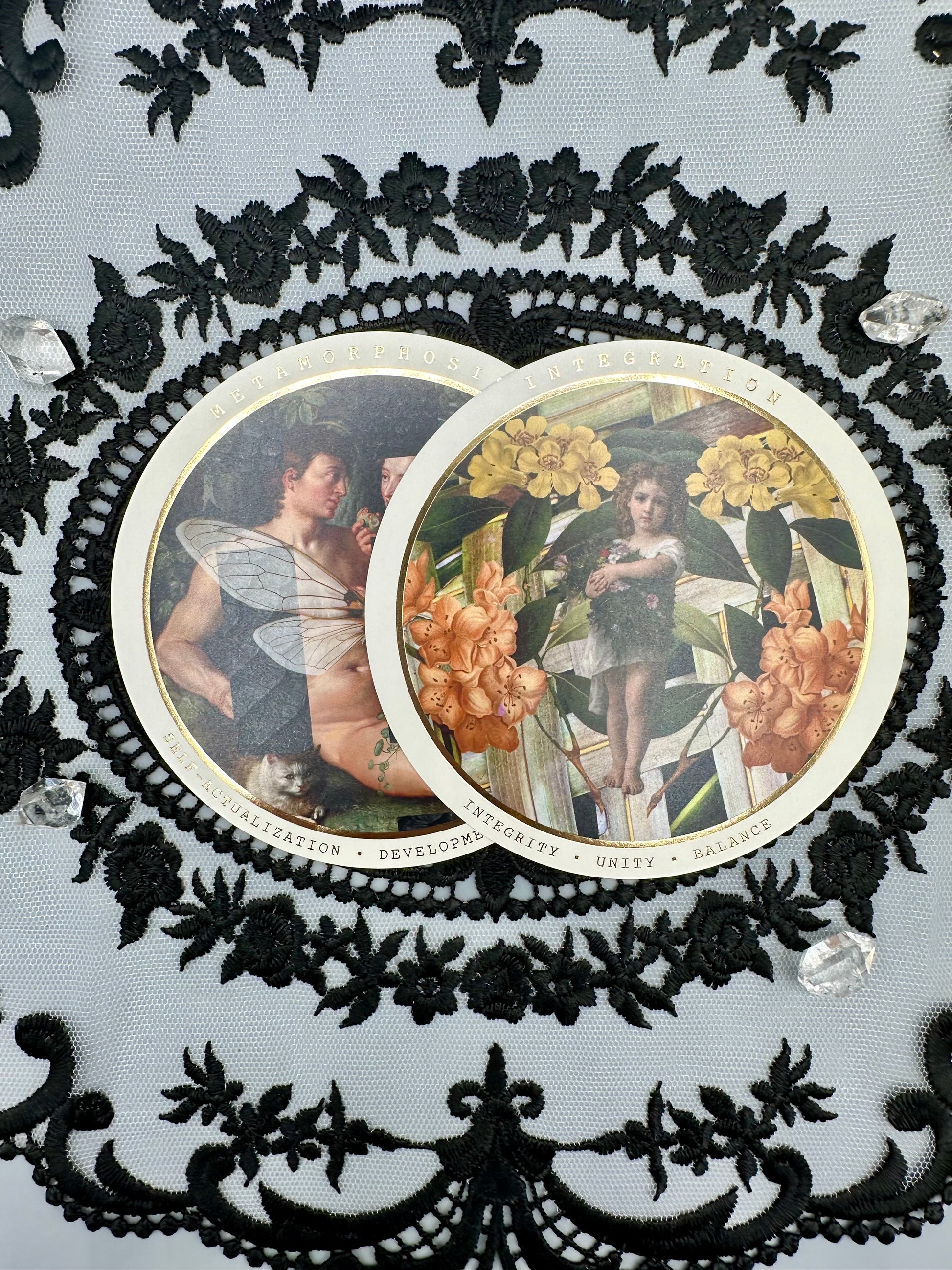 The Orakulum ("OR-AH-KOOM", Slovak for Oracle) Deck is a gorgeous round shaped oracle deck that draws on the mystic beauty of the Victorian era to create unique collage artworks that evoke the inner meaning of each card.