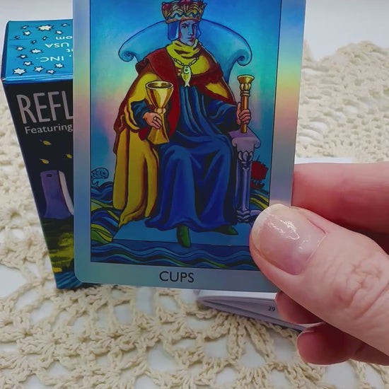 The Reflective Tarot is a fun take on the classic RWS tarot. This deck features 78 cards in the classic Rider Waite Smith style, but with the color volume and rainbow brilliance dialed up! By taking the already vibrantly colored Radiant Rider-Waite (a deck of the classic images that was re-colorized by Virginijus Poshkus) and adding holographic finishing to each card, this deck is out of this world colorful and vibrant. These cards are really fun!