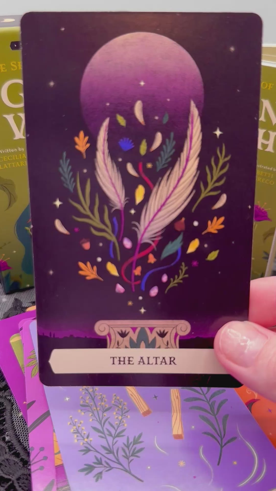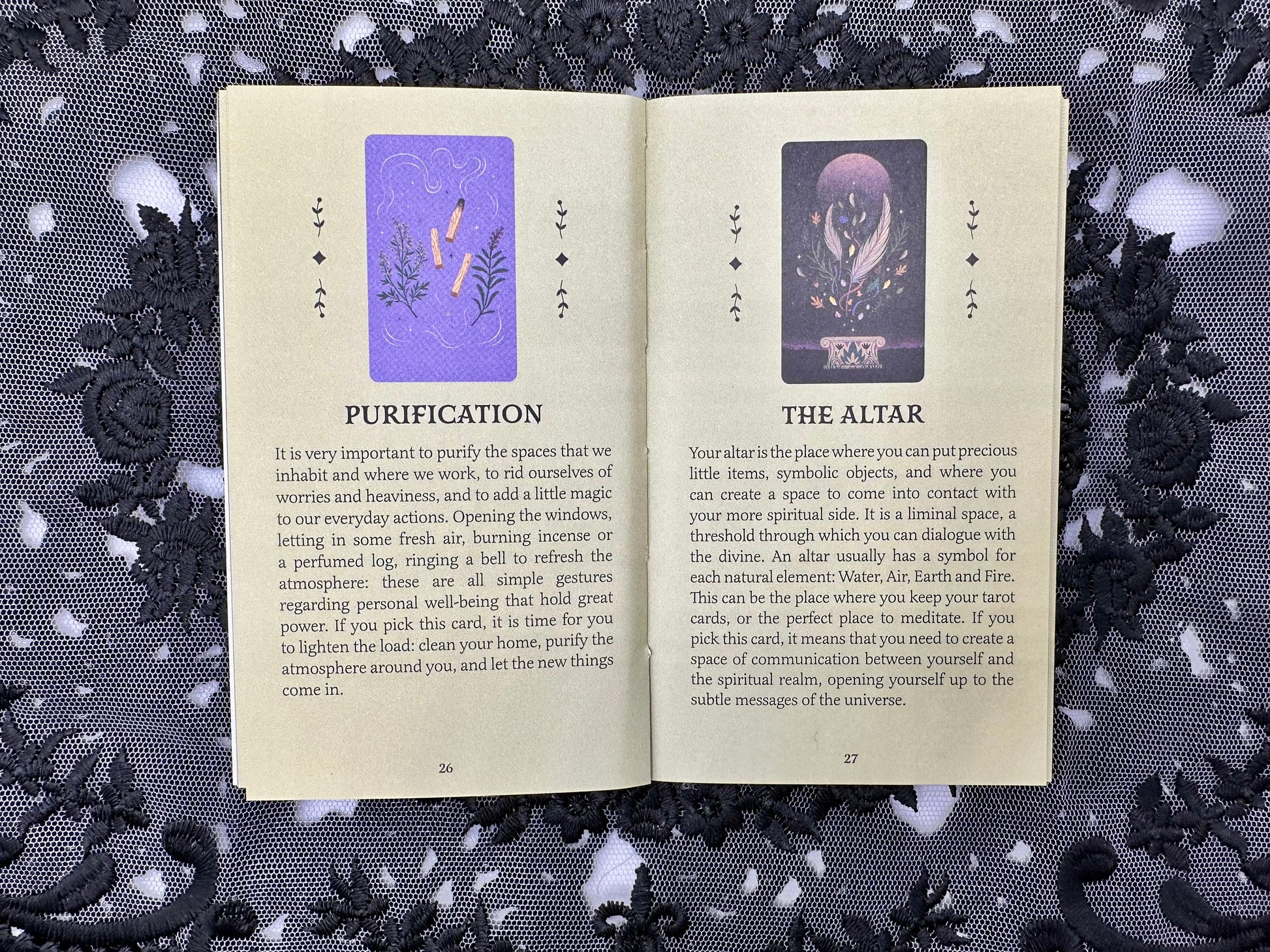 From the publisher, "The Secret Oracle of the Green Witch guides you through an enchanted garden into the heart of the woods, where the Green, Hedge and Kitchen Witches reveal their special magic. Learn to listen to the voices in the woods and receive their messages through symbols and stories. Recognize the plants, animals and natural elements used for charms, talismans and potions. The deck brings together the important herbs, tools, tales and inspiration you'll need for your spell work. Includes 50 cards and 65-page illustrated guidebook."