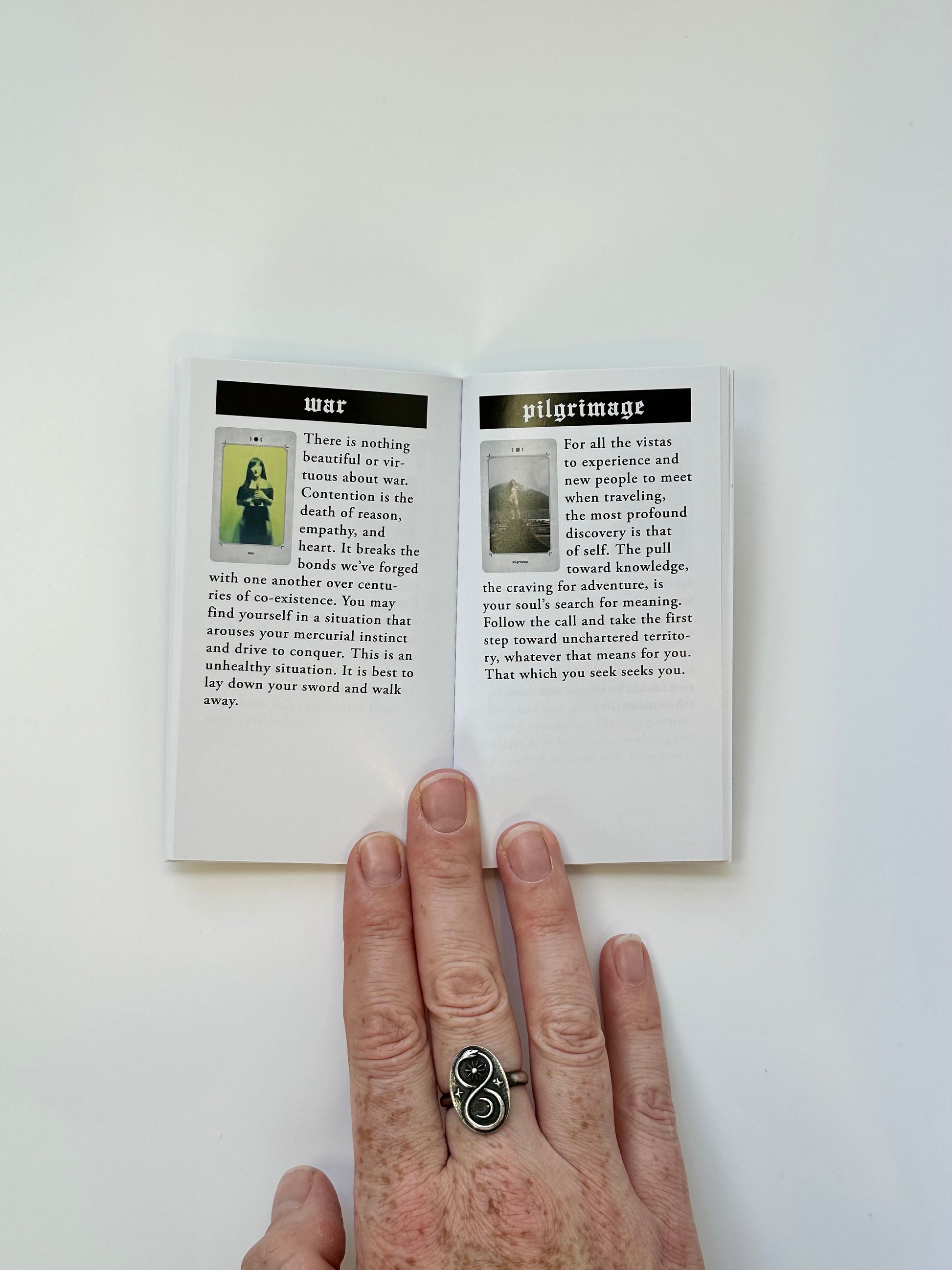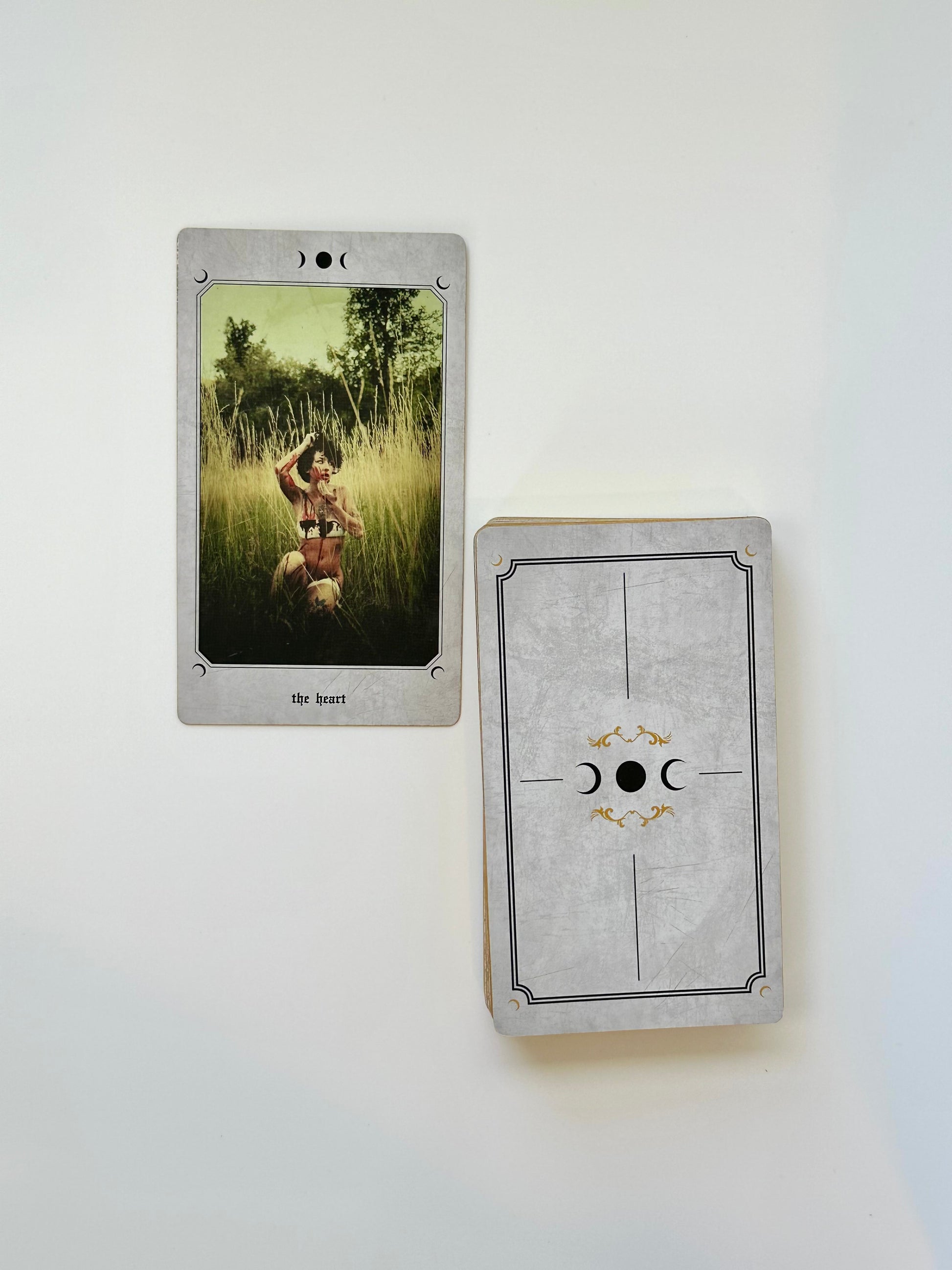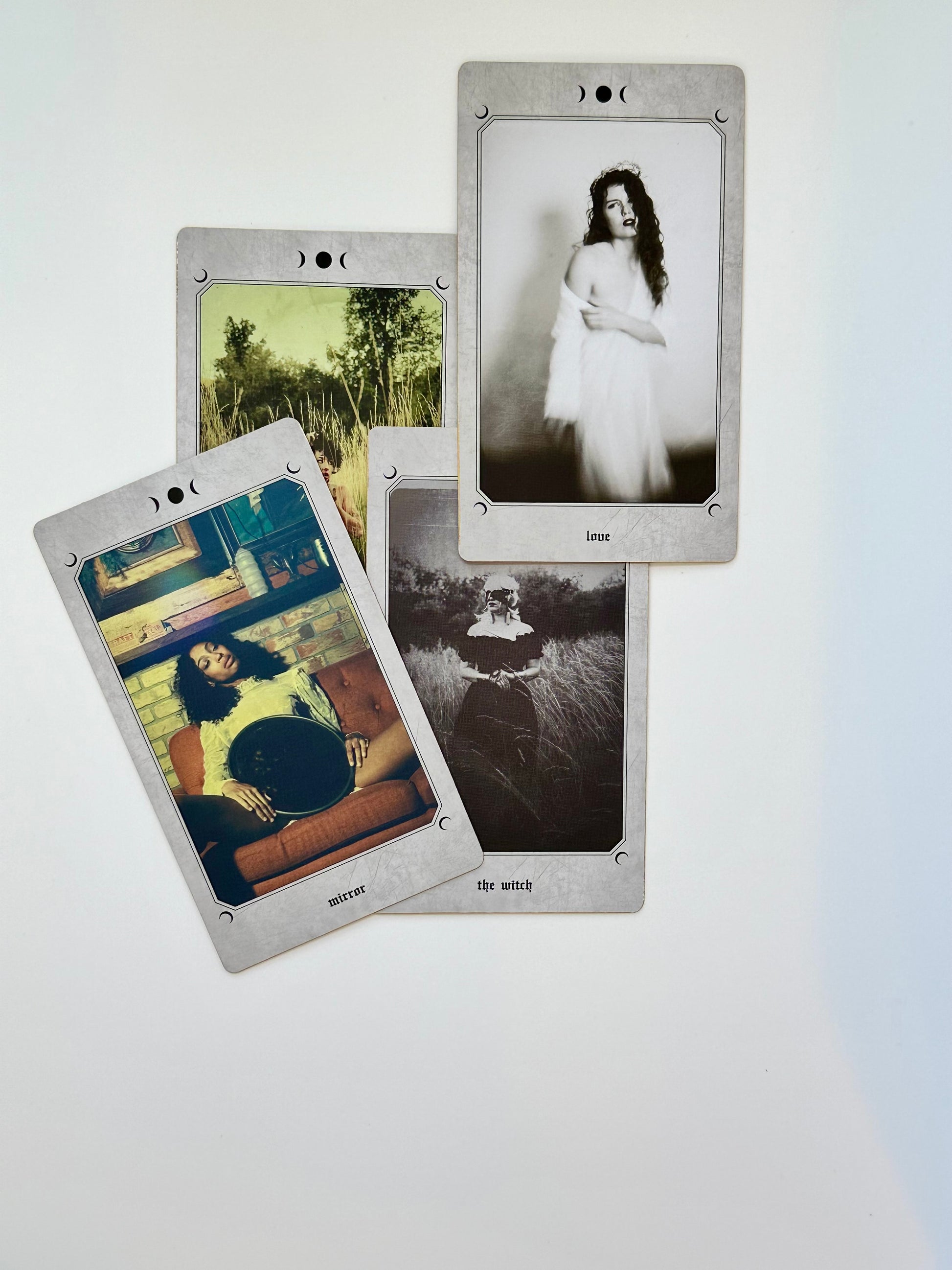 From the creator, "Using strong visual imagery along with a guidebook, this special Oracle desk assist you through difficult emptions, trauma work, finding clarity in your relationships, or direction and guidance for life. Three Black Moons' dark and beautiful feminine nature gazes into the macabre as you connect to the deepest parts of your soul in a sacred ritual sometimes known as shadow work."