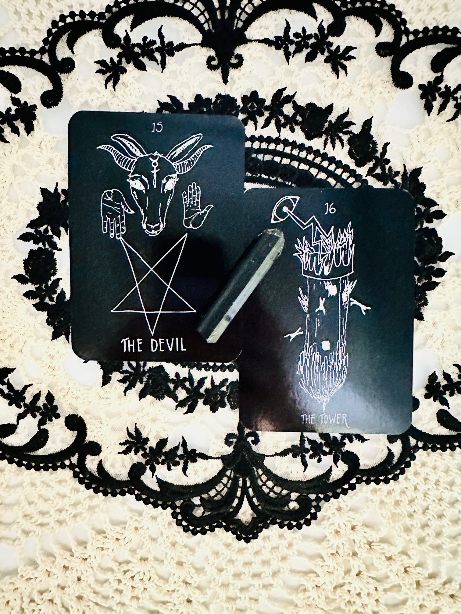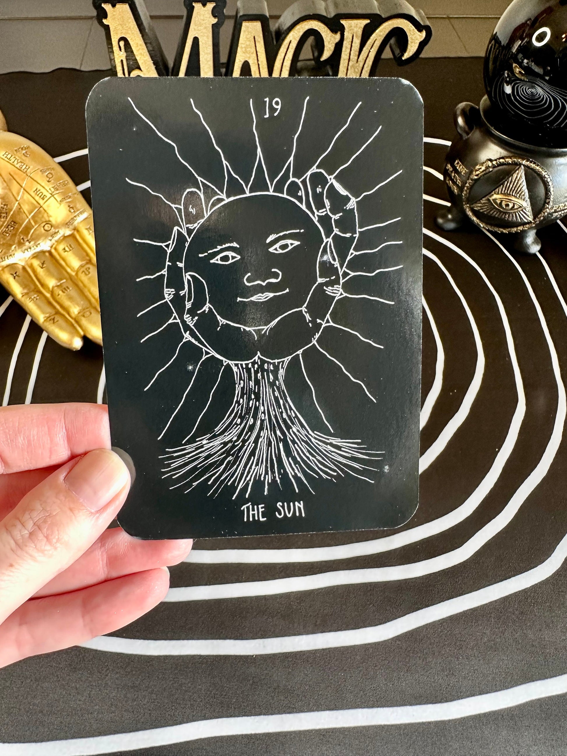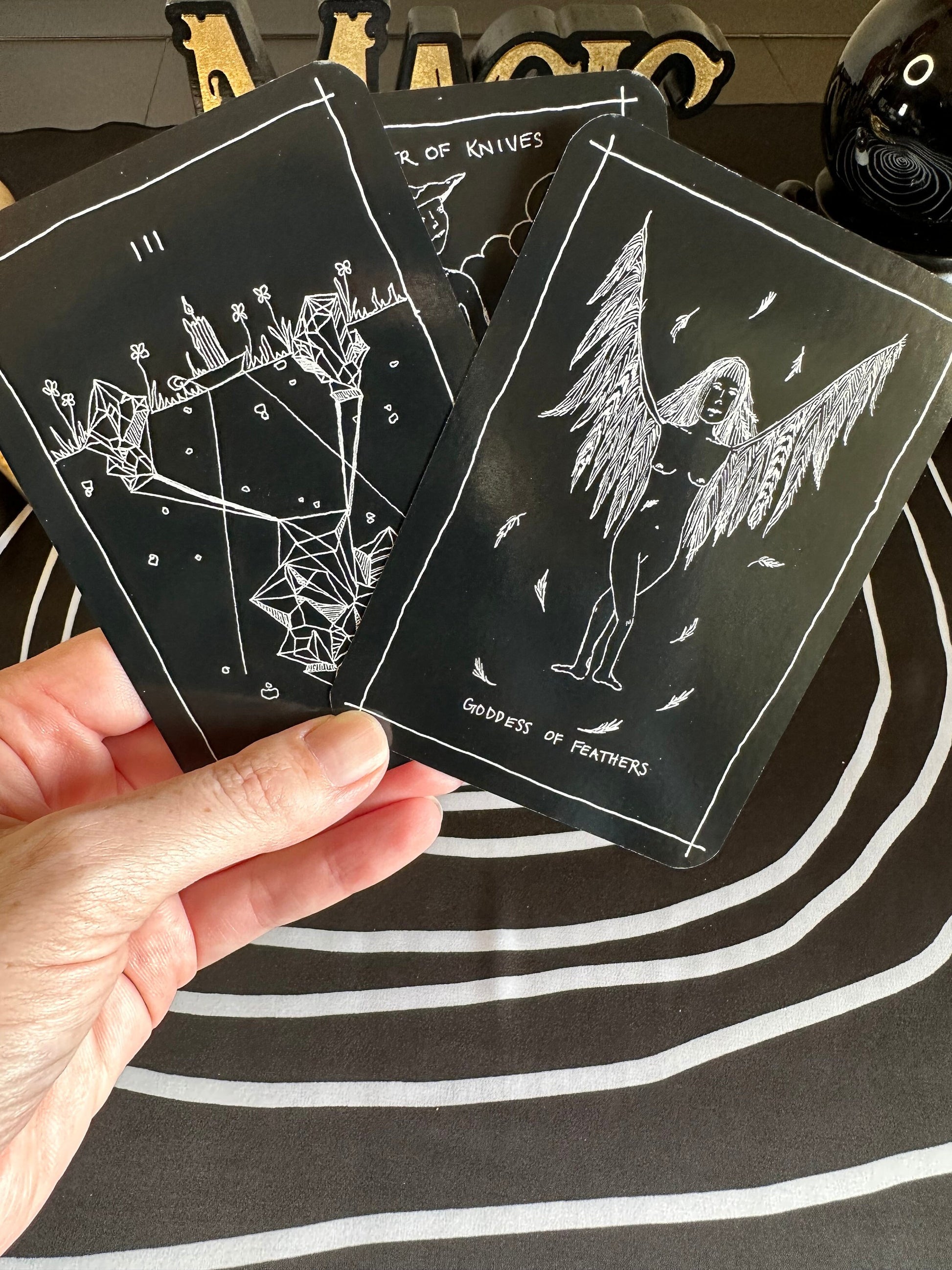 The Wanderer's Tarot is one of my absolute all-time favorites, which is why I am so excited to be able to offer this divination tool here! This deck was created by Casey Zabala, an amazing intuitive, witch and creative. Every bit of her magic shines through in this deck. These cards are a portal! The cards are black with white line drawings, evoking your subconscious and imagination to spark your own inner intuition and creativity.